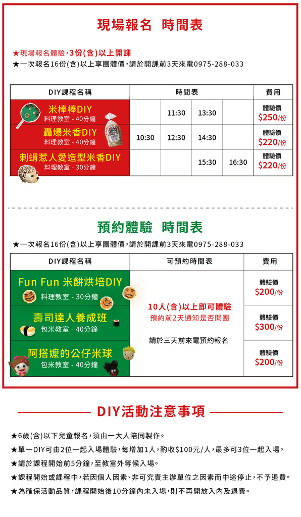 DIY體驗時間及費用