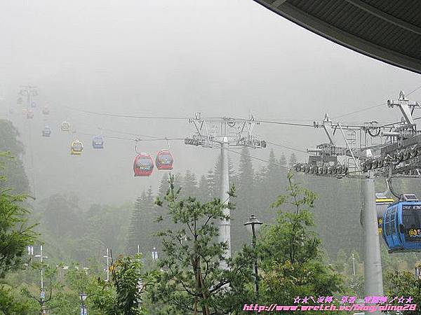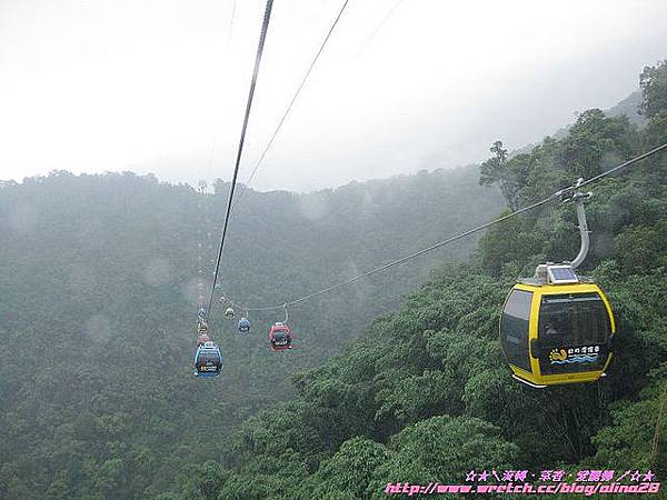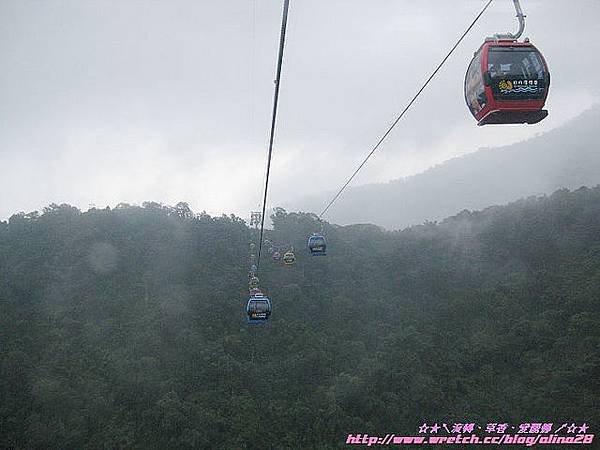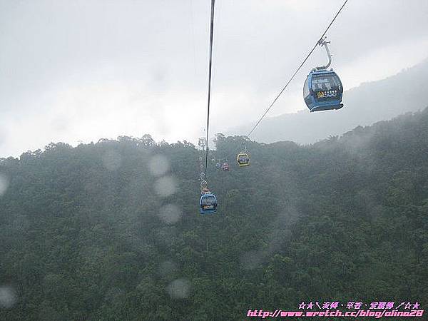 隨著纜車緩緩開動,看著窗外的雨中山景,雖因為視線不佳無法得以好好窺探,但也是個特別的感受。