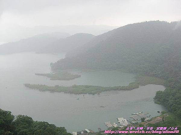 沒多久大伙嚷嚷著看見日月潭了,我隨著眾目光望過去,這也是我第一次看見雨中的日月潭全貌,真的和記憶中又不太一樣了,多了點浪漫的氣息。