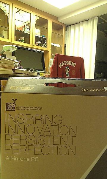 購買當下因為我沒有在電腦前,所以並不知情到底東東買的是哪一台?不過猜想有了去年同樣也是生日禮物的GF3經驗後,他應該不會買白色外觀,果真,中秋節當天東東抱著這台桌電回到家,打開箱子,嶄新的桌電映入眼簾。