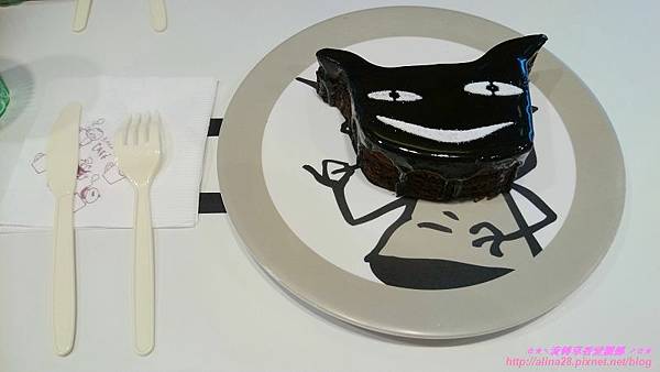結帳完畢後最先上桌的就是已經在冰櫃等待很久的蛋糕啦!他叫做壞東西,是濃巧克力蛋糕哦,NT.180元