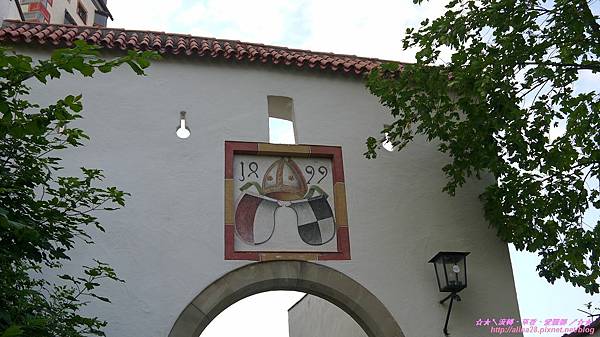 離開修道院後往右手邊前進,映入眼前的是這座非常吸引人的教堂, 原來這是聖靈醫院教堂,牆壁上是救火者的圖樣, 如果時間允許,羅曼蒂克大道的終點就在這附近, 查了網路上有找到的遊記是位在民宅旁的一扇大門, 不過這資訊是回台灣以後才知道的,也成為此趟旅遊的遺珠。