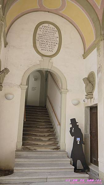 原來我們誤闖了聖曼修道院啦,這間修道院已經擁有千年的歷史, 建立於西元840年,在十八世紀時被改建為現今所看到的巴洛克式建築, 內部是博物館,展示巴伐利亞王室歷史, 除了陳列有每位國王的肖像外, 還有路德維二世預計建造的第四座城堡模型──鷹石山城堡(Schloss Falkenstein) 以及中國城的構想圖等等。