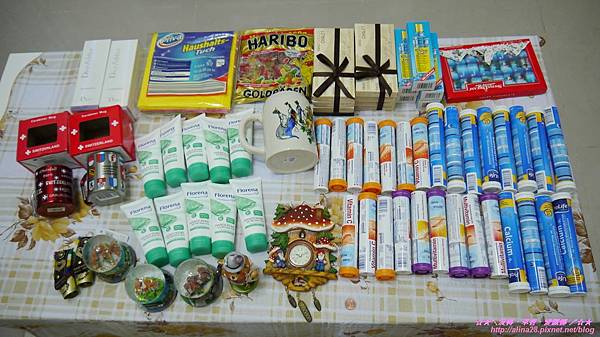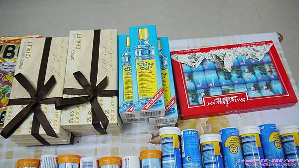 左上角是在茵特拉根買的巧克力,共6盒,分送給親戚們一戶一盒,最右邊是在超市買的巧克力,旅途中被我和老公當嘴饞時的小點心吃掉一盒啦...