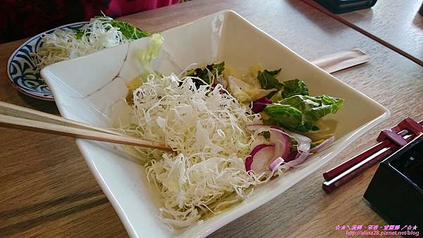 另外兩種芝麻沙拉醬和玉蔥和風醬是用來沾高麗菜絲的,玉蔥和風醬嘗起來有酸甜滋味,芝麻沙拉醬則較為濃郁,我個人比較偏愛芝麻沙拉醬。