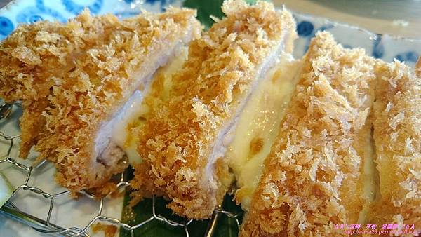 接著就來品嘗今天的主角豬排套餐啦!東東的起司里肌豬排先上桌。
