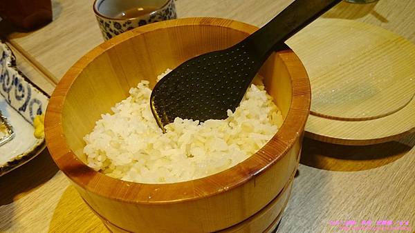 差點忘了,兩種飯都是可以無限續加的,我跟東東第二次續加換口味改吃白飯,結果服務生用小木桶裝給我們,感覺份量比兩碗還要多耶...看的東東心花怒放,哈哈...