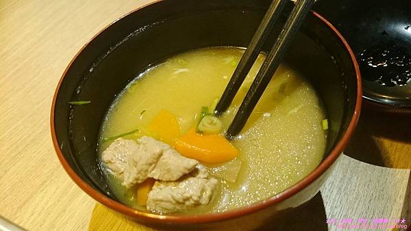 除了飯和高麗菜絲,味增湯也是可以無限續加的喔。