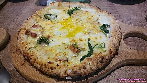 因為披薩內的蛋真的沒有全熟,搭配上培根味道真的很不賴
