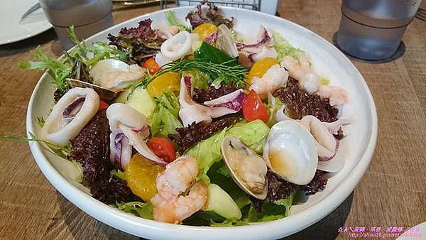 海鮮有花枝、蛤蠣、 蝦子等,搭配上酸酸的油醋實在是一道非常適合夏天的清爽開味菜呀