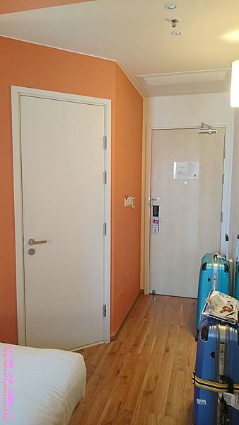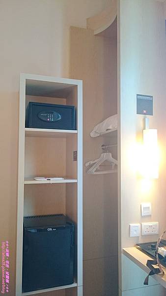 寸土寸金的香港地狹人稠,房間和澳門喜來登飯店相比小了許多,入口玄關處與床鋪的位置很近,