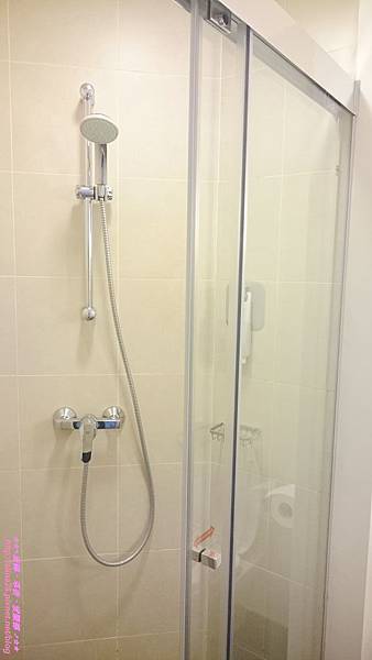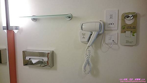 淋浴空間也是小小的,僅能一個人盥洗,吹風機鑲嵌在牆壁上,就連面紙盒也是,非常有意思。