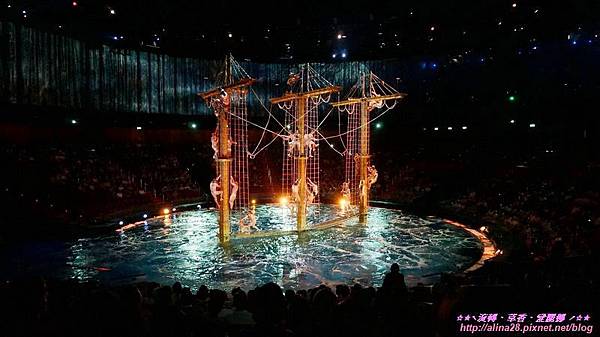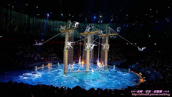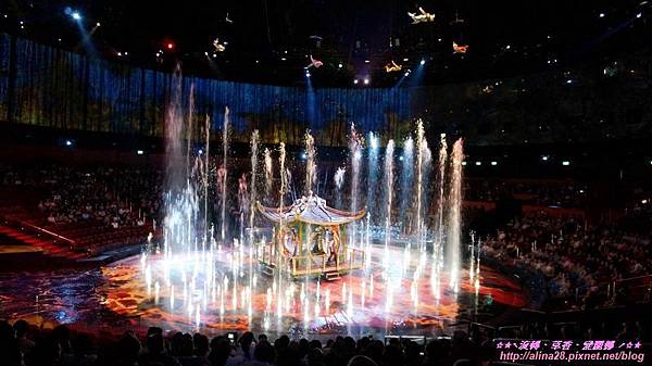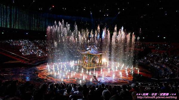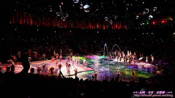 其實我覺得因為場地是整個呈現將近360的立體環繞,像我們坐在最上方也無礙於觀賞,雖然票價是相對便宜的(我們的票價是港幣596元),但由上而下俯瞰也看得蠻清楚,如果想要再進一步跟表演人員有所互動,可以選擇坐在A到D排,這四排位置在表演時會被表演者所濺起的水花噴灑到,應該是最有臨場感的,如果想選擇坐在這幾排記得要自備雨具,但也聽說主辦單位很貼心有提供輕便雨衣,總之不管有無,還是自己準備一下比較妥當才是。